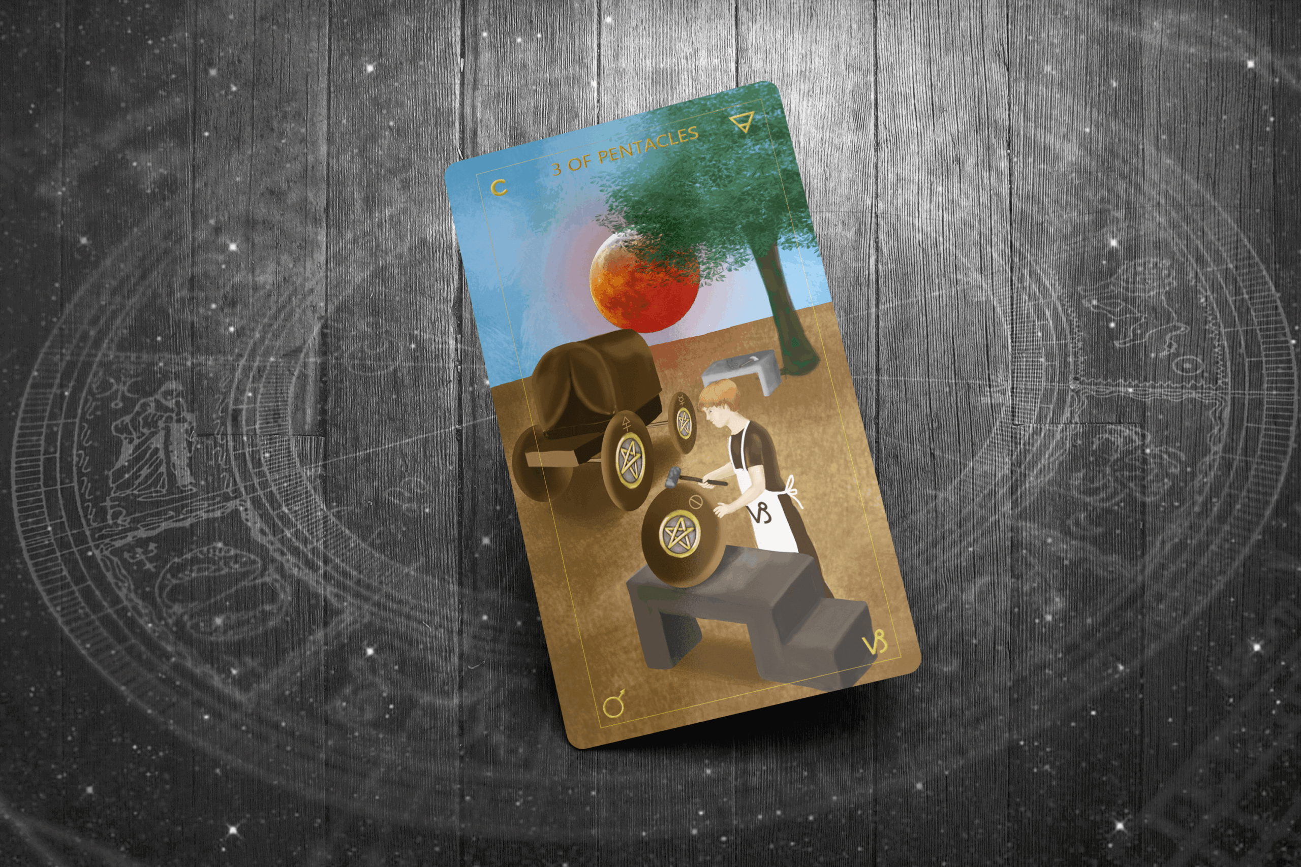 The 3 of Pentacles represents teamwork, craftsmanship, and dedication. As Binah in Assiah, it embodies the understanding needed to create something lasting in the physical world. This card is about practical action, skill-building, and achieving success through effort.
