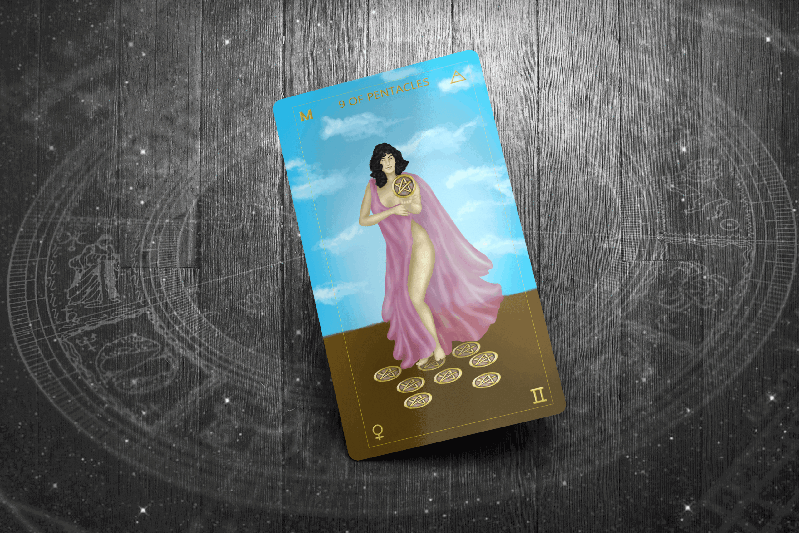 The 9 of Pentacles is a card of earned success, stability, and self-reliance. It teaches that material wealth should be enjoyed but not define us. This card encourages us to remain grateful and grounded while celebrating our accomplishments.